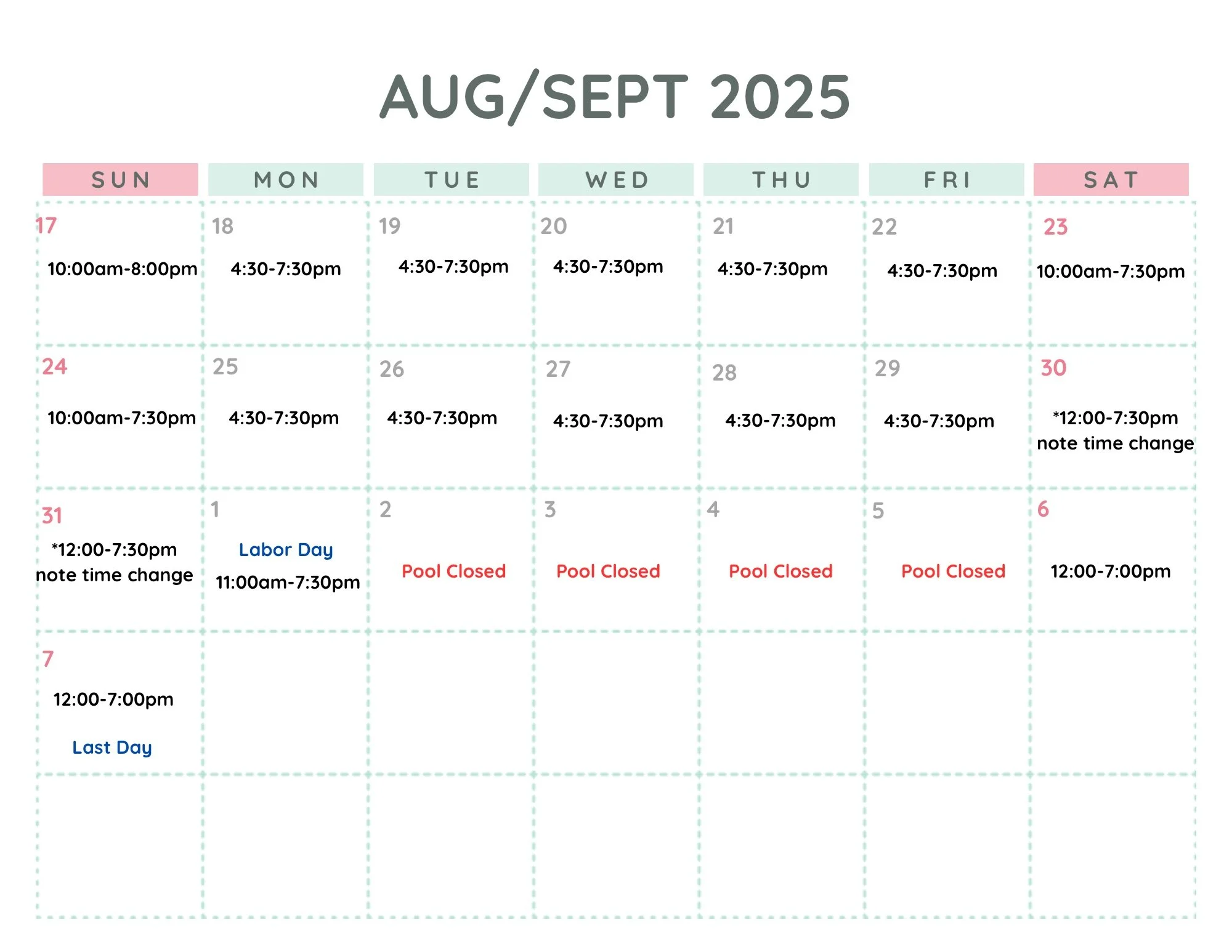 The County Line Cafe will open daily when the family pool is open. Join us for a classic poolside item or enjoy from our selection of healthy options.