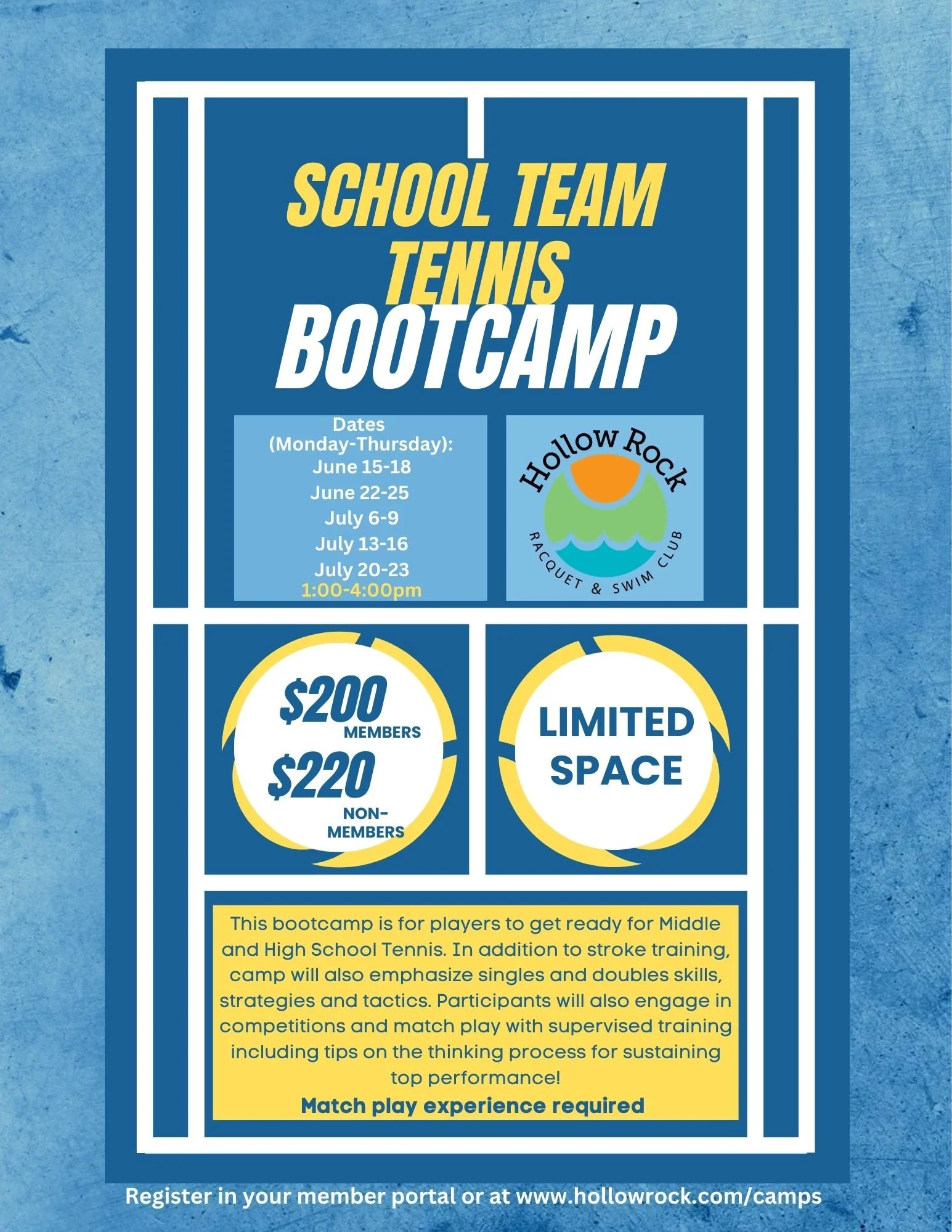 2026 Tennis Camp ($355 for members, $405 for non-members)